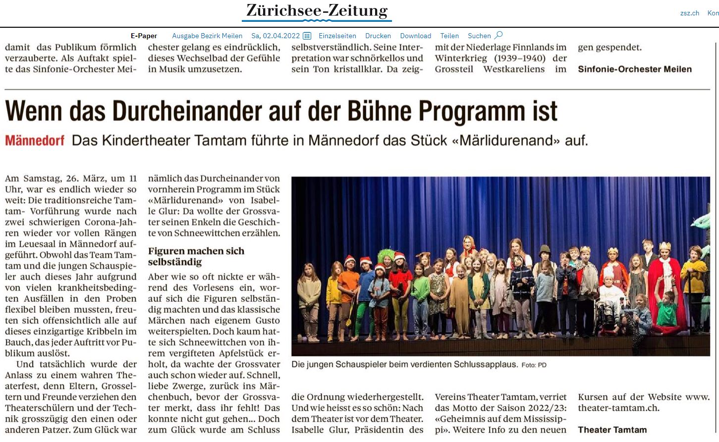 Artikel in der Zürichseezeitung vom 2. April 2022