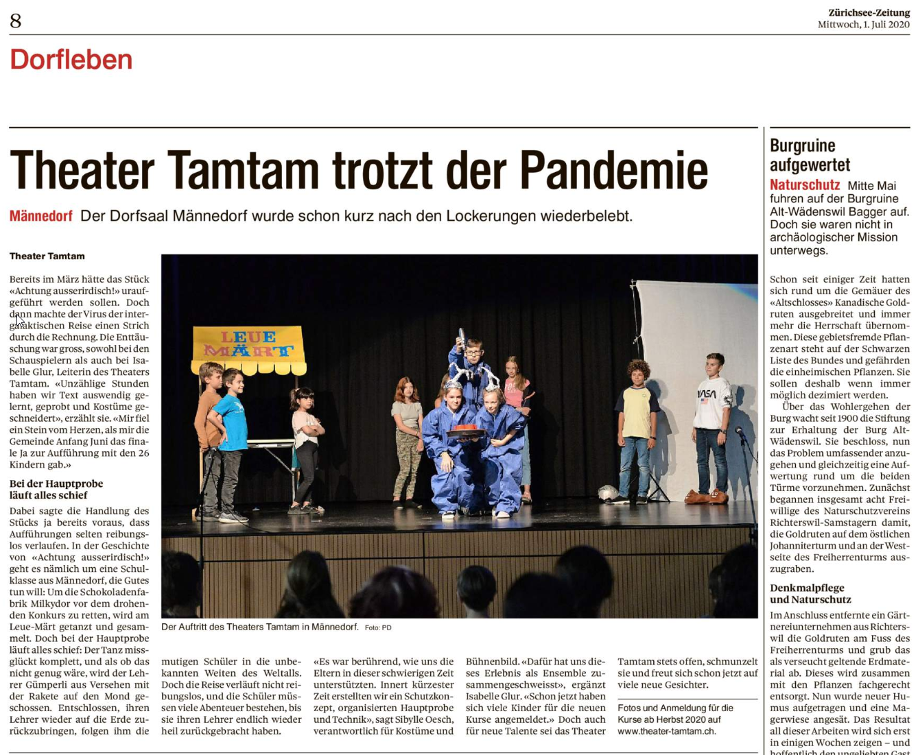 Artikel in der Zürichseezeitung vom 1. Juli 2020